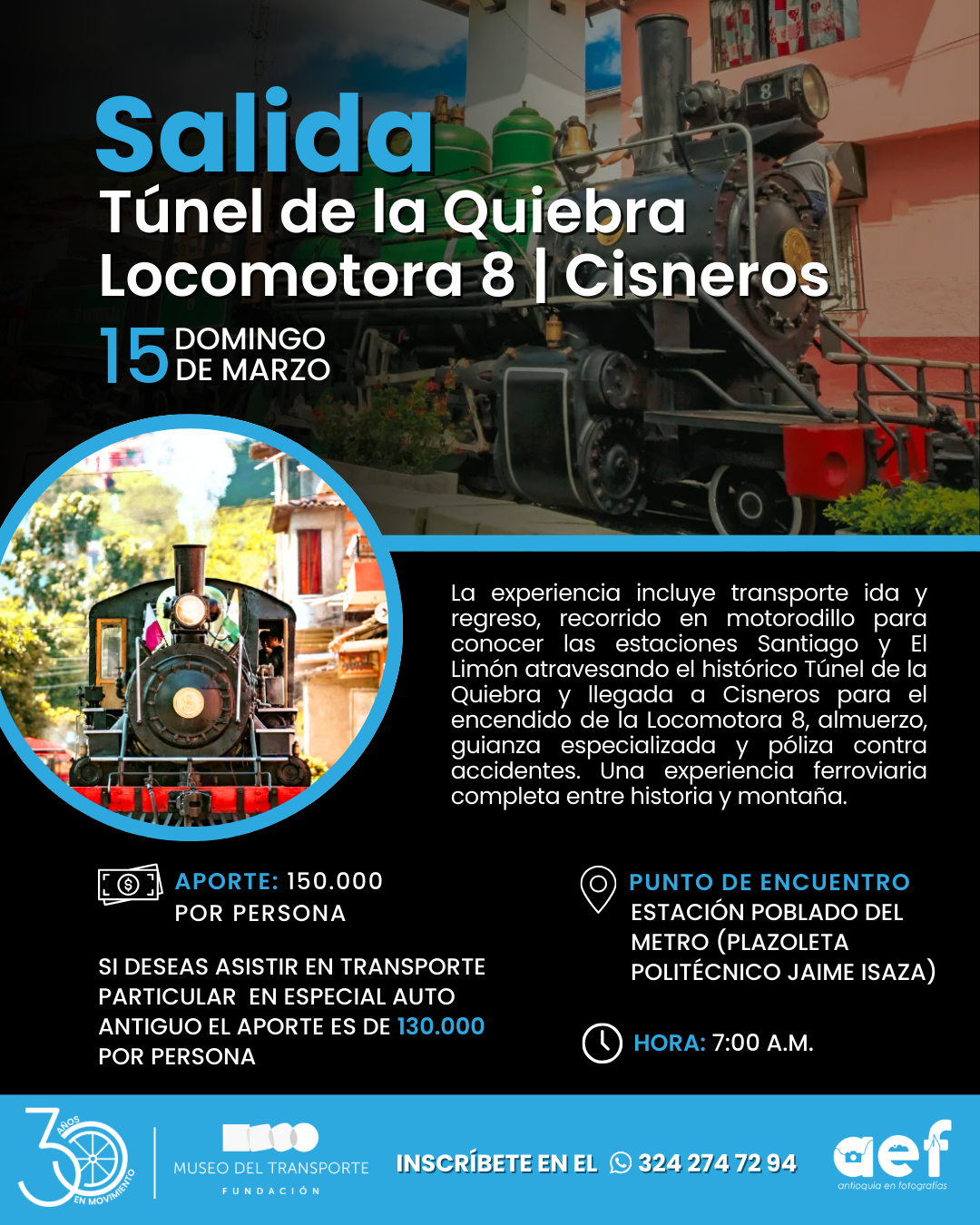 🏞️📸 El Museo del Transporte y Antioquia en Fotografías te invitan a una salida conjunta que se vive sobre rieles: este Domingo 15 de marzo cruzaremos en motorodillo el legendario Túnel de la Quiebra, inaugurado en 1929 con 3.742 metros de ingeniería monumental que cambió para siempre el desarrollo del nordeste antioqueño.
